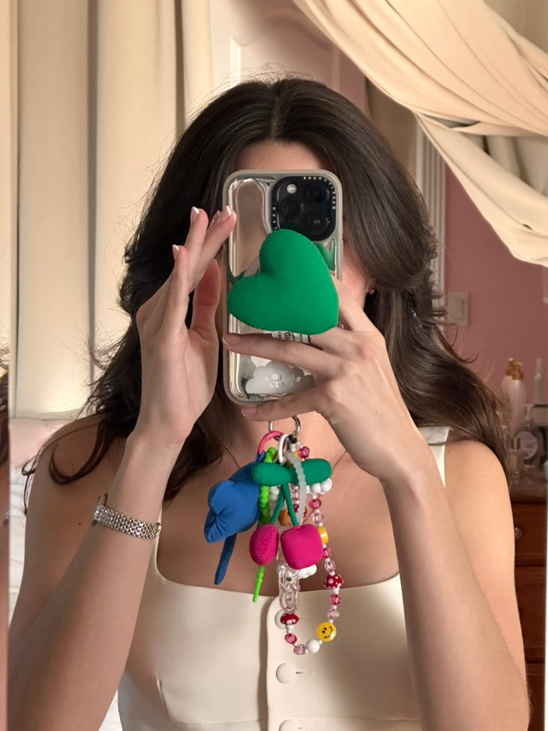 Este corazón hecho a mano le da un toque de diversión y estilo a tu funda de celular. Dile adiós a los accesorios aburridos y hola a un estallido de personalidad.