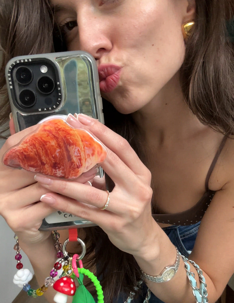 ¡Haz que tu celular se vea antojable con este Croissant Pop Grippy! Esta divertida y única adición a tu funda de celular no solo hará un statement, sino que también te brindará un agarre seguro. ¡Se acabaron las caídas de celular al tomar esas selfies perfectas (o fotos de snacks)!